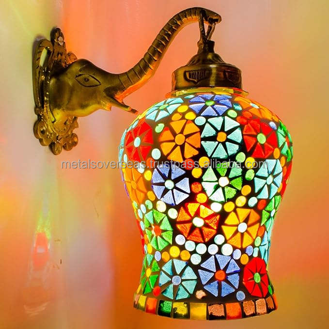 Lampe murale multicolore en mosaïque de verre pour la maison et le bureau, fabriquée par Metal Overseas.