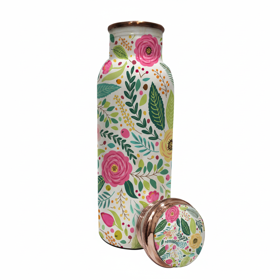 Multi Color Flower Copper Water Bottle Enamel Printed Ayurvedic Leak Proof Eco Friendly Flask Office Travel Wholesale Exporter