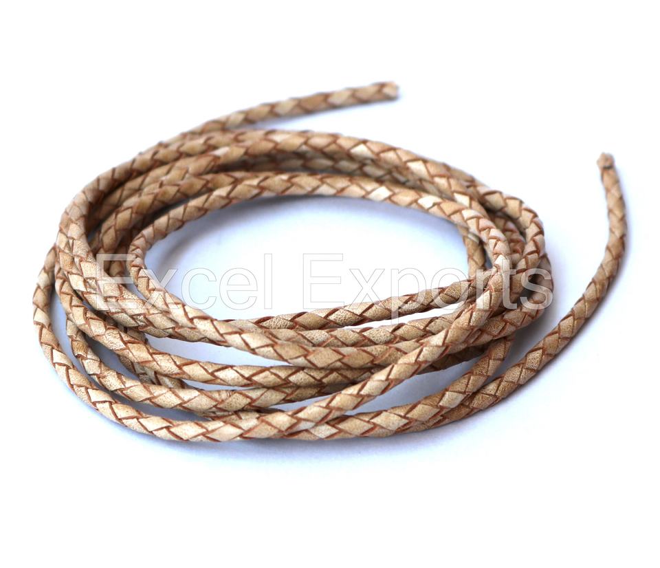 Cordons en cuir tressé véritable multicolores pour bijoux, laisses pour chiens et poignées de sacs en 3 mm, 4 mm, 5 mm, marque EXCEL EXPORTS, paquets de 20 m