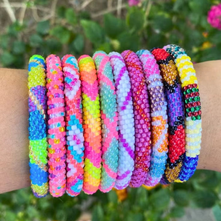 Ensemble de bracelets en perles de verre multicolores, tressés à la main, bijoux de poignet tubulaires pour femmes, accessoire de tous les jours