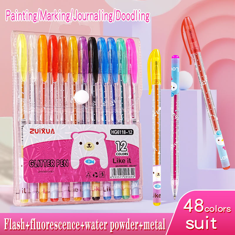 Multi-Color Glitter Gouache Métal Surligneur Manuel d'étudiant Coloriage Graffiti Stylo Gel Stylos