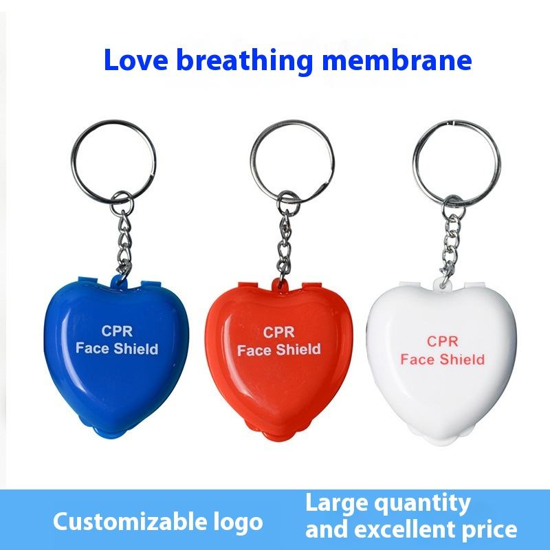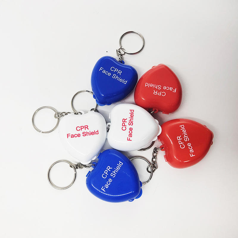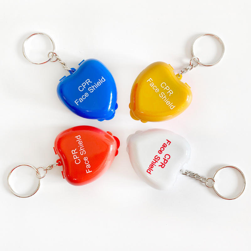 Porte-clés en forme de cœur multicolore, masque facial CPR, masque respiratoire à valve unidirectionnelle, respiration artificielle bouche à bouche