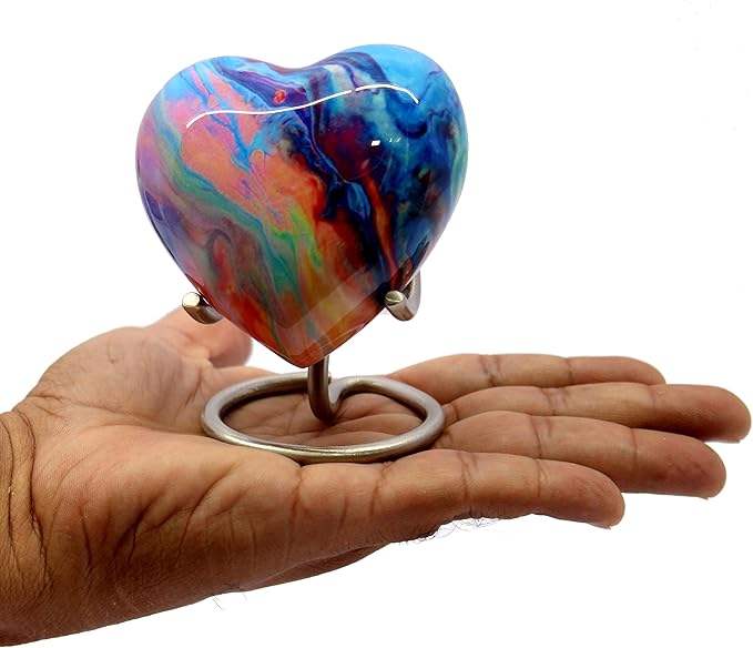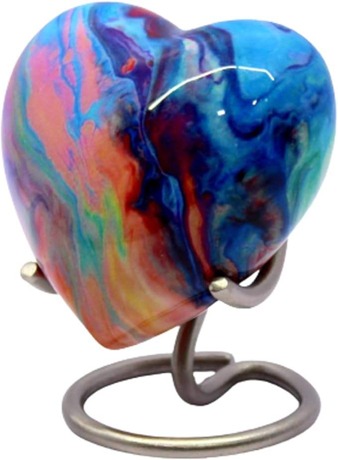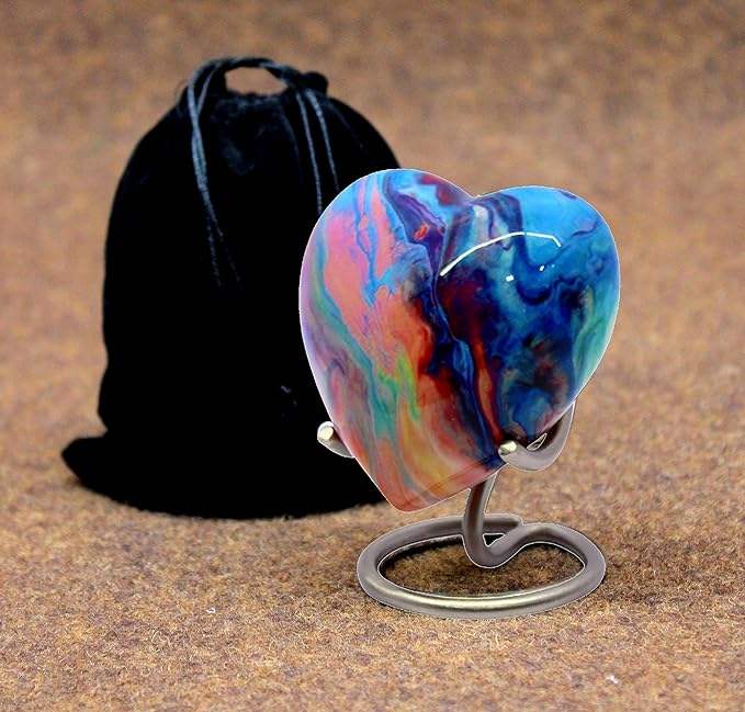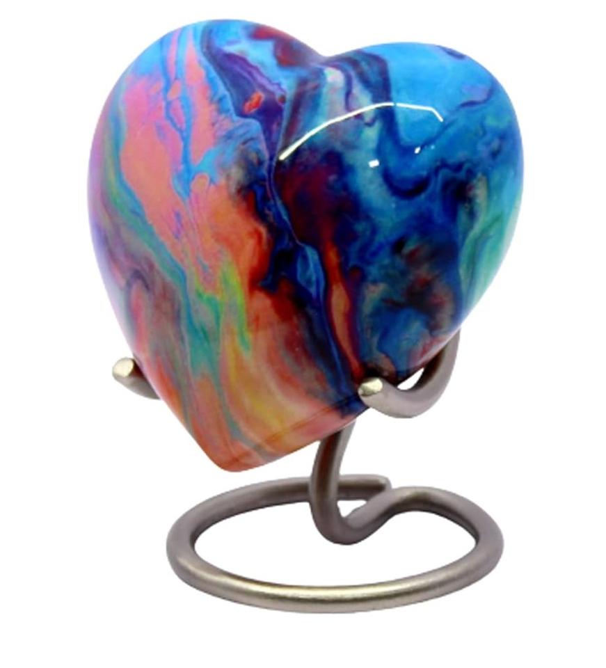 Urne en forme de cœur multicolore Petits souvenirs en forme de cœur Urnes de crémation en métal et aluminium Style moderne avec support en acier inoxydable