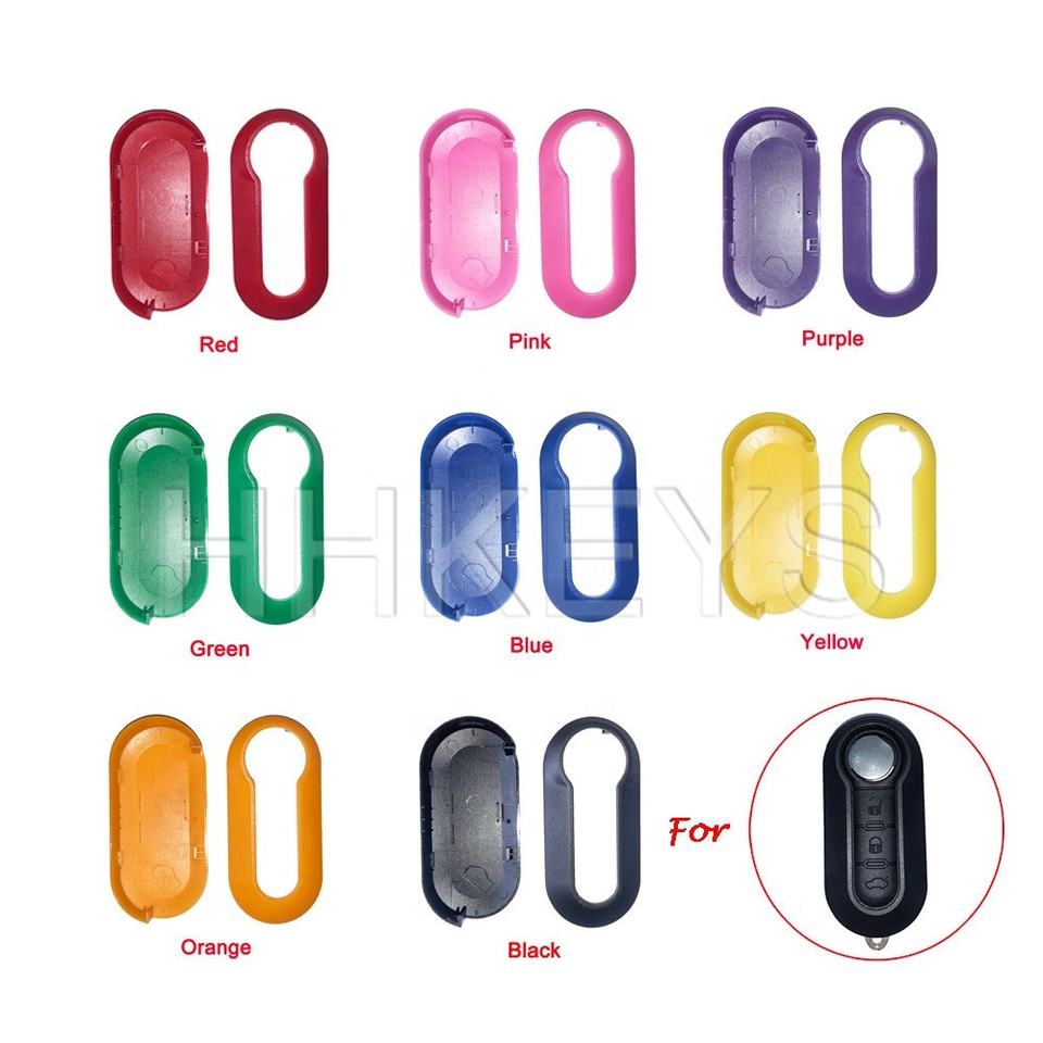 Étui à clés multicolore en plastique, coque de remplacement compatible avec la clé de voiture Fiat 500 Punto