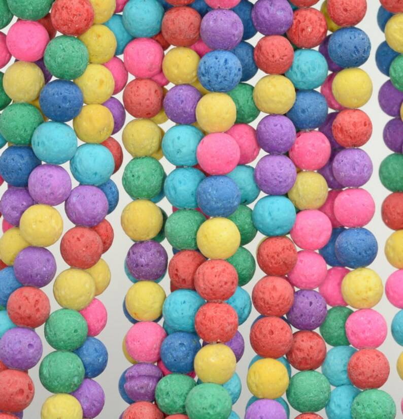 Perles de lave multicolores en pierres gemmes naturelles, couleurs magnifiques, idéales.