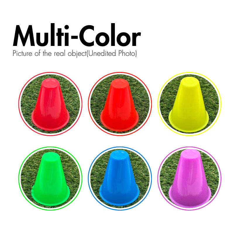 Cônes marqueurs étanches au vent multicolores Mini PE J-Rex de 8cm de hauteur 2.5mm d'épaisseur pour l'entraînement au football, au basket-ball et au patin à roulettes
