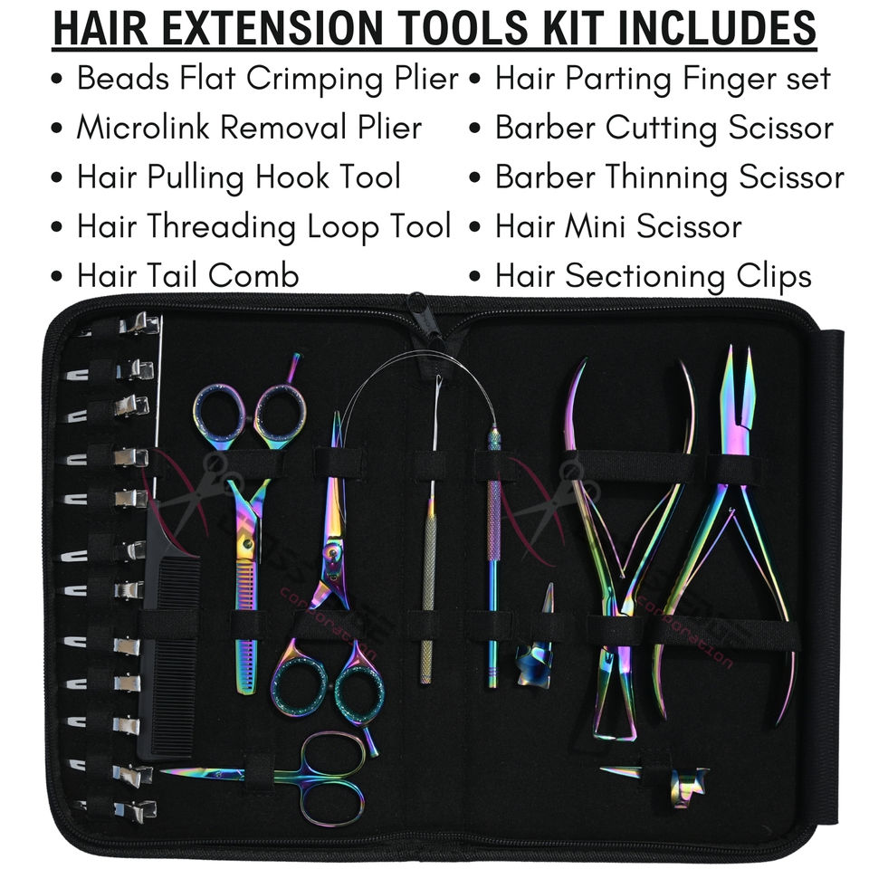 Utilisation:Extensions de cheveux perles Crimper outil de retrait ciseaux de coupe de barbier, Kit d'outils pour extensions de cheveux de salon de beauté avec titane