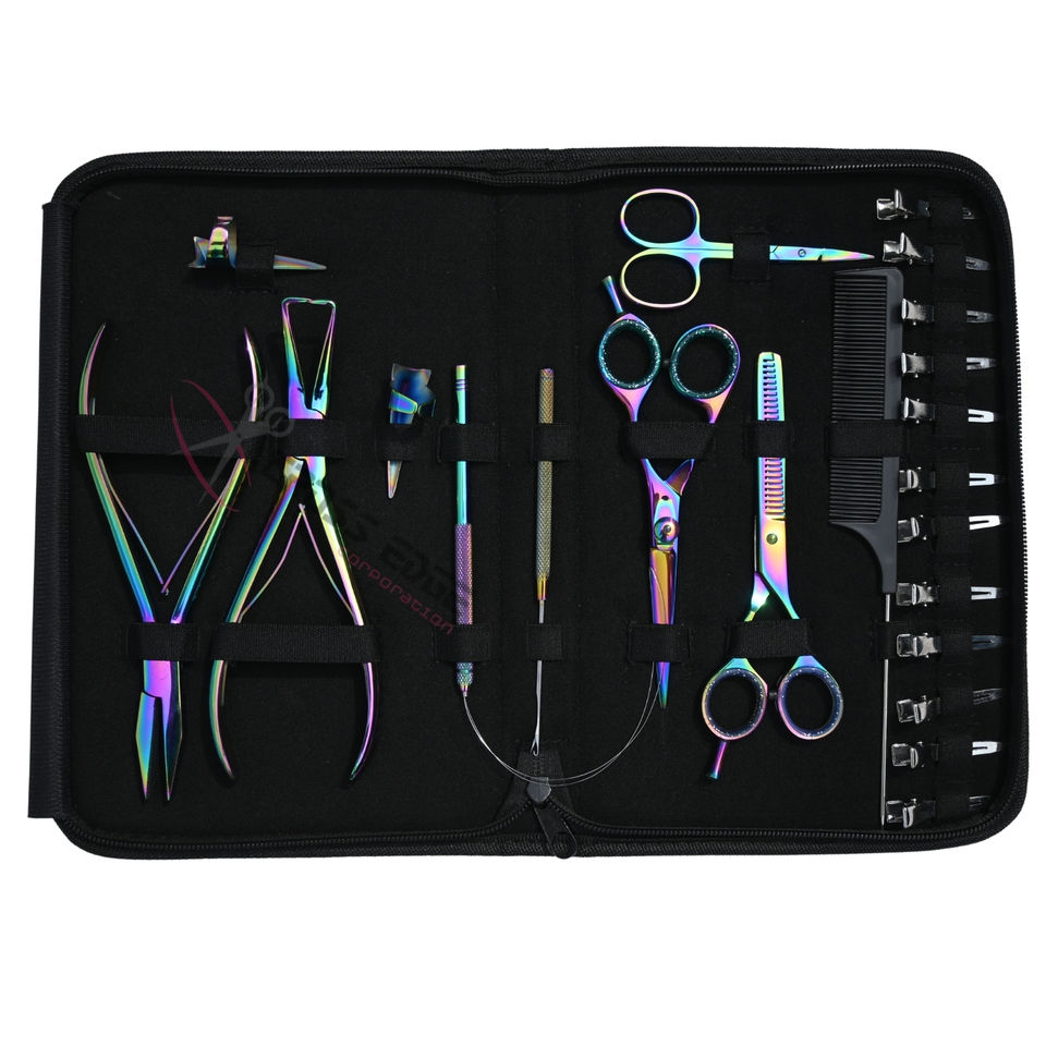 Nom du produit:Kit d'outils pour extensions de cheveux de salon multicolore avec titane