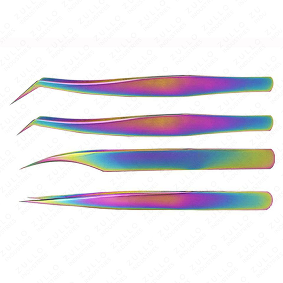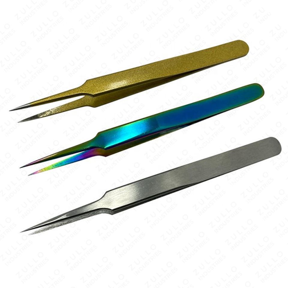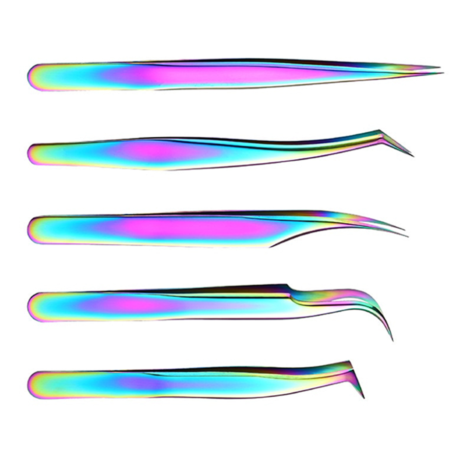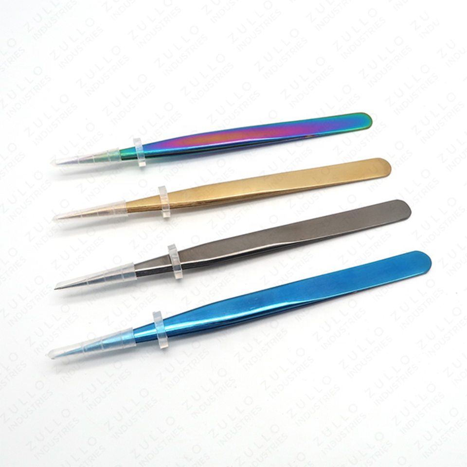 Pince à épiler multi-couleurs en acier inoxydable pour extensions de cils, outil applicateur de précision à pointe fine, personnalisable avec marque privée