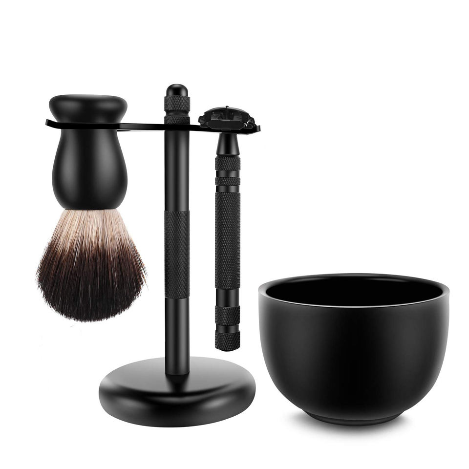 Manche en bois multicolore Kit de rasage personnalisé blaireau pour hommes avec rasoirs de sécurité Stand Kits