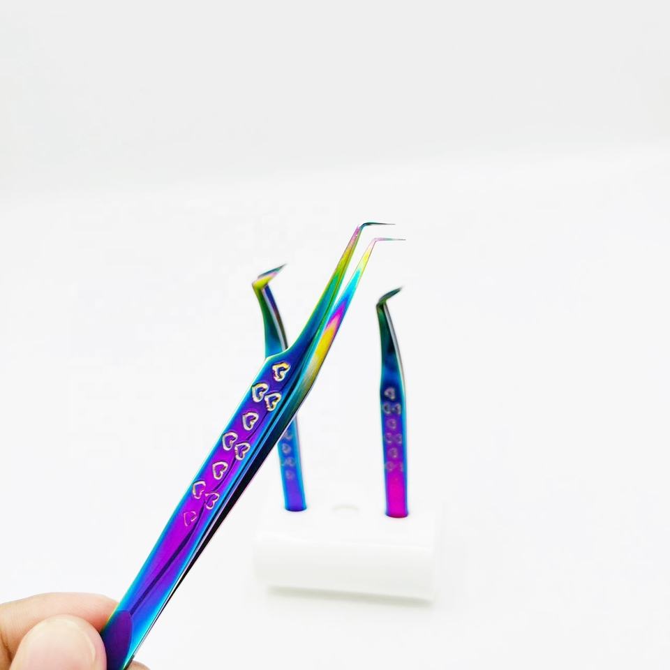 Pince à épiler pour extensions de cils volume russe, en acier inoxydable durable, gravée en forme de cœur, multi-thèmes, produit en promotion