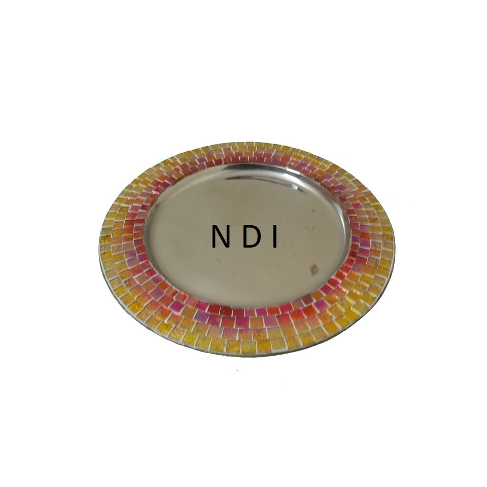 Assiette de chargeur en métal au design mosaïque multicolore pour hôtel maison restauration vaisselle usagée assiette de chargeur de service alimentaire