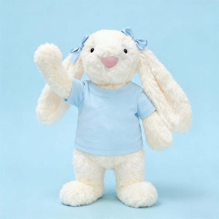 Jouets en peluche lestés à câliner, lapin beige timide multicolores avec nœud papillon, chemise rose, bleue, violette