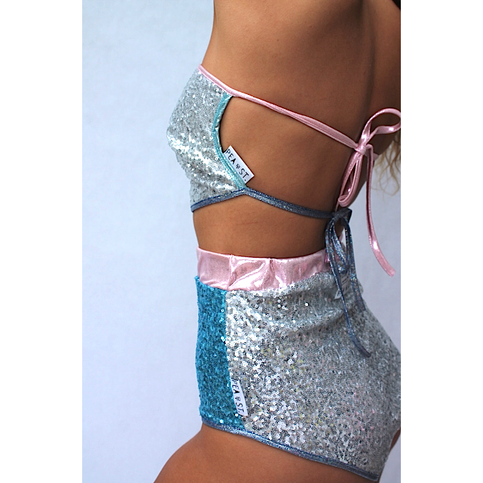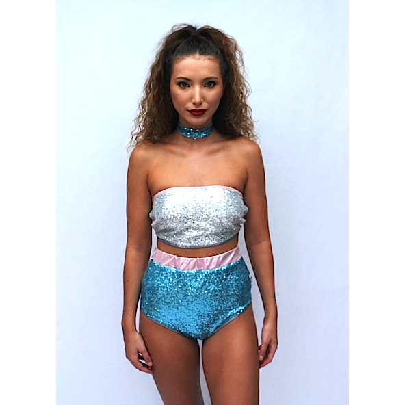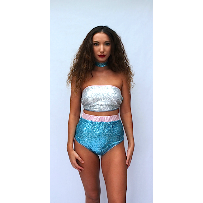 Multi Colour 3 sequin peakini boob tube