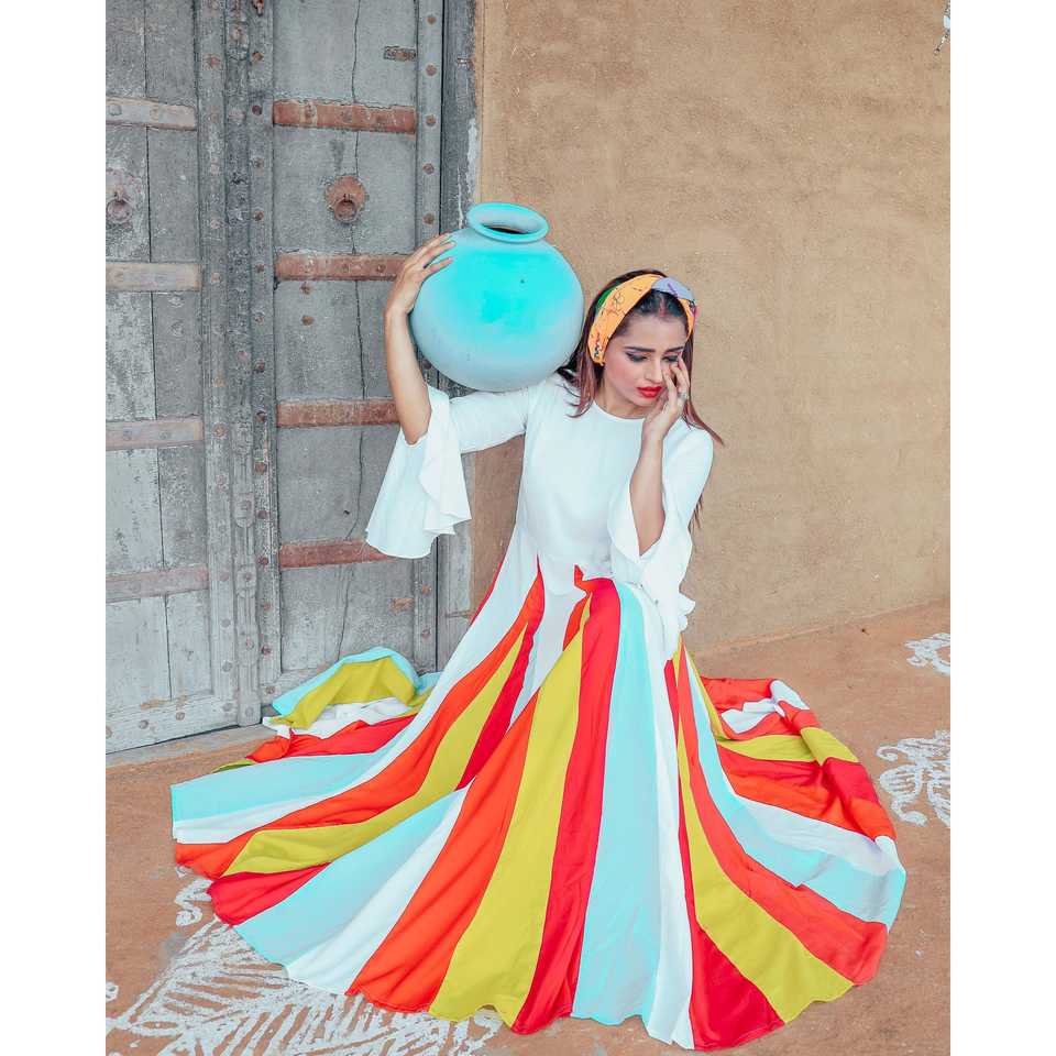 Ensemble évasé en mousseline multicolore Snow Angrkha coupe trapèze