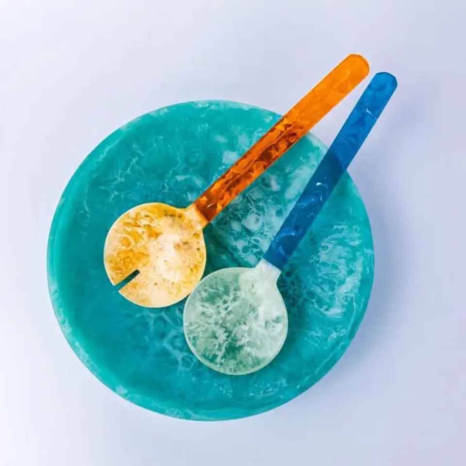 Ensemble de Cuillères à Salade Multicolores en Résine Faite à la Main, Design Écologique, Qualité Supérieure, Ustensiles de Cuisine, Ensemble de Couverts