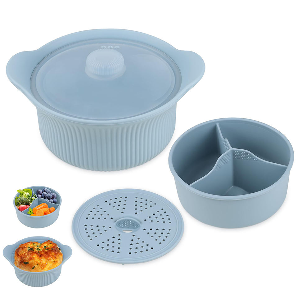 Cuisinière vapeur en silicone multi-compartiments, compatible micro-ondes, pour légumes et viande, 3 compartiments pour la cuisson à la vapeur des aliments
