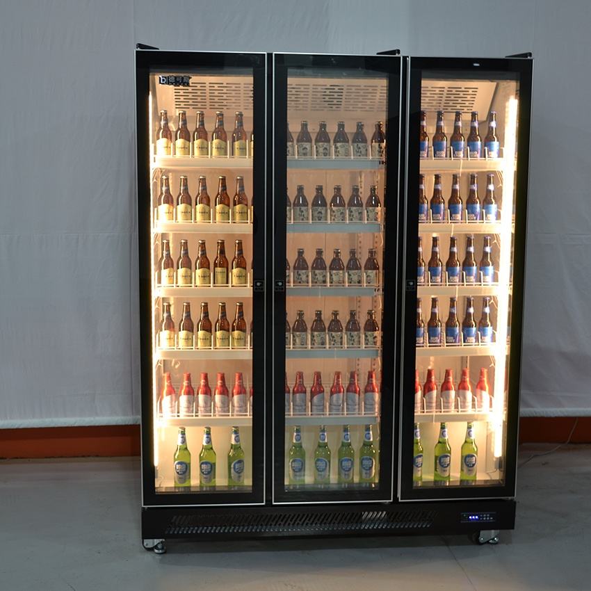 Refroidisseur de boissons en verre à plusieurs étages, réfrigérateur vertical de boissons debout