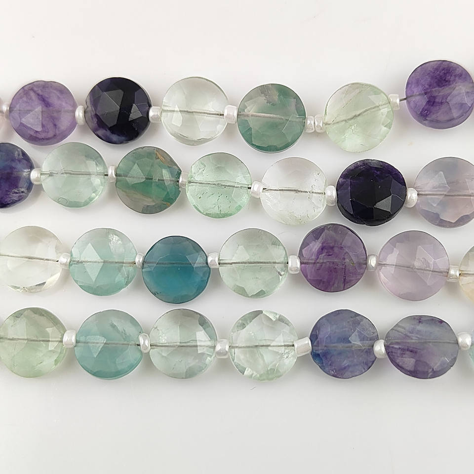 Perles de fluorite multicolores de 8 à 9 mm, forme de pièce de monnaie facettée, 20 à 22 perles dans un fil de 8 pouces, fabrication de bijoux faits à la main, perles de pierres de naissance