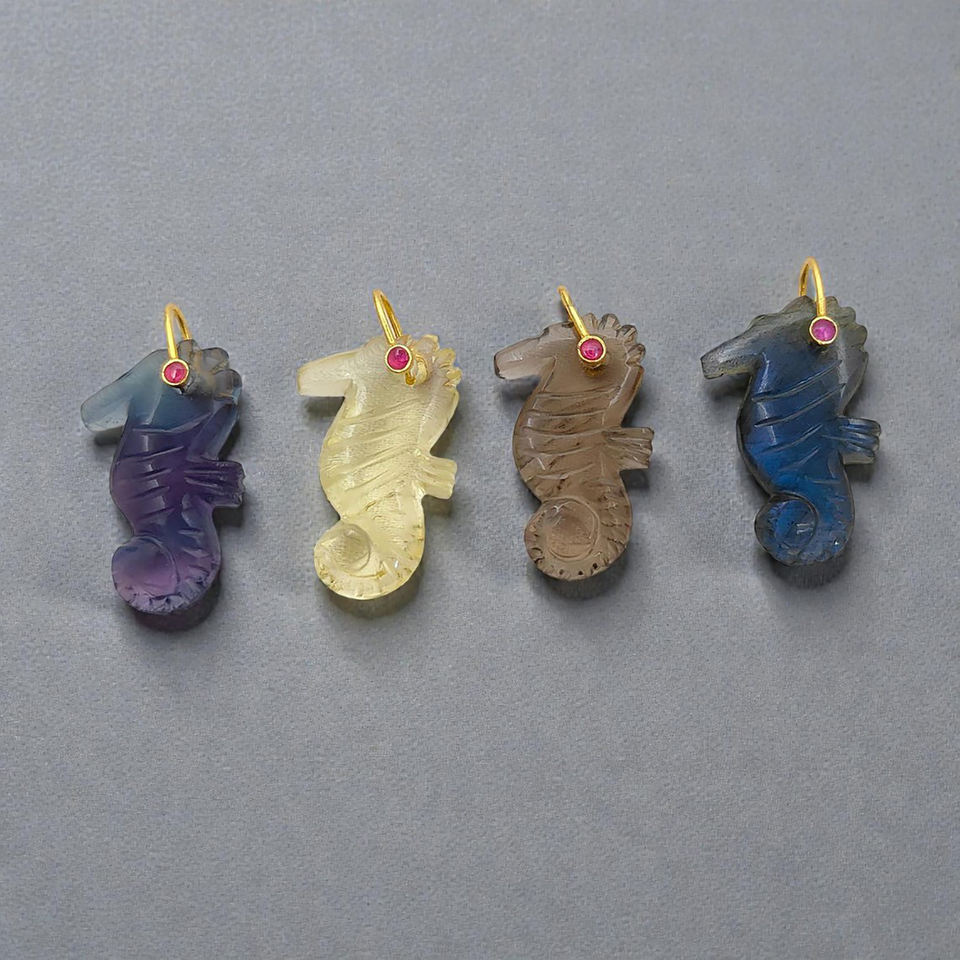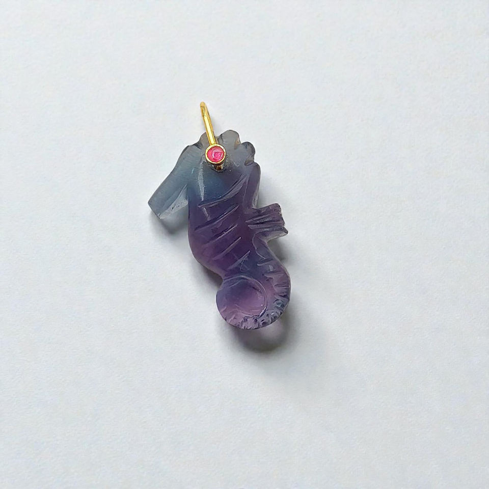 Pendentifs en pierre précieuse multi-fluorite en forme d'hippocampe | Charmes d'animaux sculptés à la main en gros