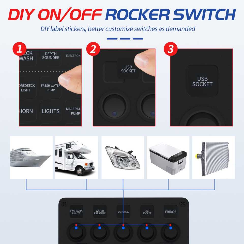 Panneau d'interrupteurs à bascule multifonction 5 voies rond avec LED bleue pour véhicules automobiles