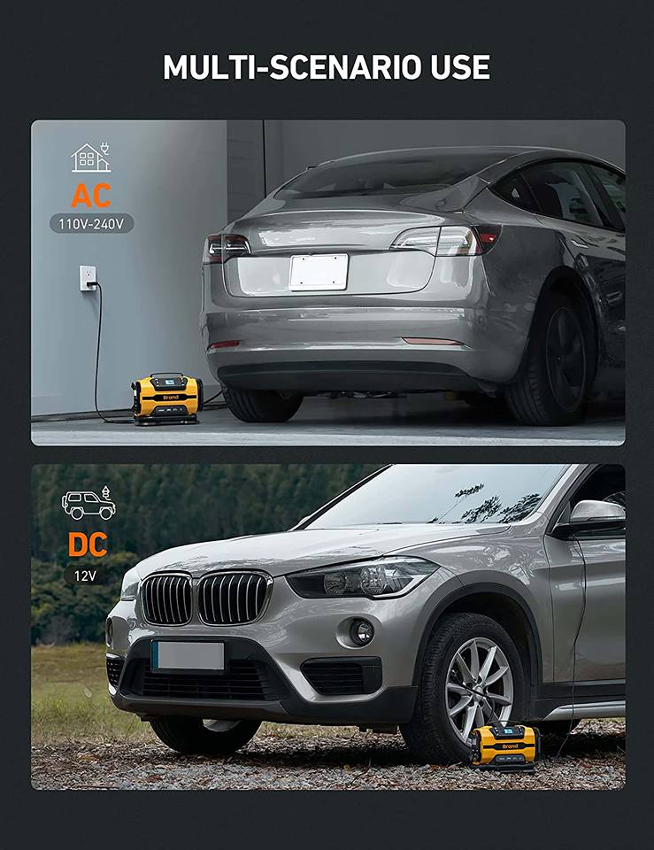 Compresseur d'air électrique multifonction, gonfleur de pneus de voiture, gonfleur de pneus numérique AC/DC, pompe à air pour pneus portable, DC 12V AC 110V
