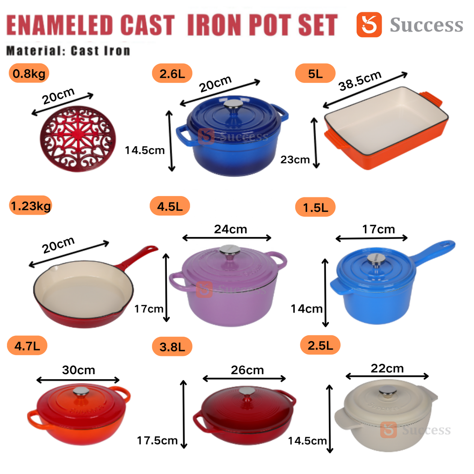 Marmite multifonctionnelle en fonte émaillée, adaptée à toutes les tables de cuisson, large gamme de tailles et de couleurs