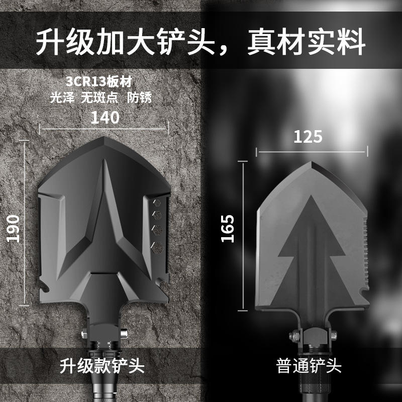 Pelle de tranchée multifonction tout noir D14X-25, outil de survie pliable pour le camping, portable pour l'extérieur et l'autodéfense