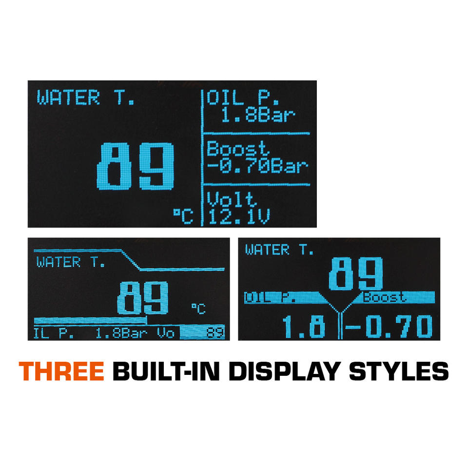 Capteurs optionnels:Pression d'huile, Température eau/huile, Pression de suralimentation, Température des gaz d'échappement