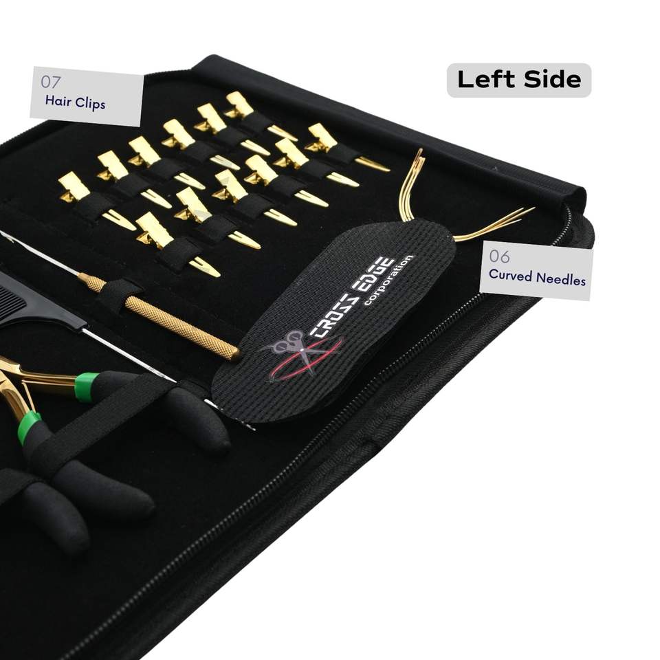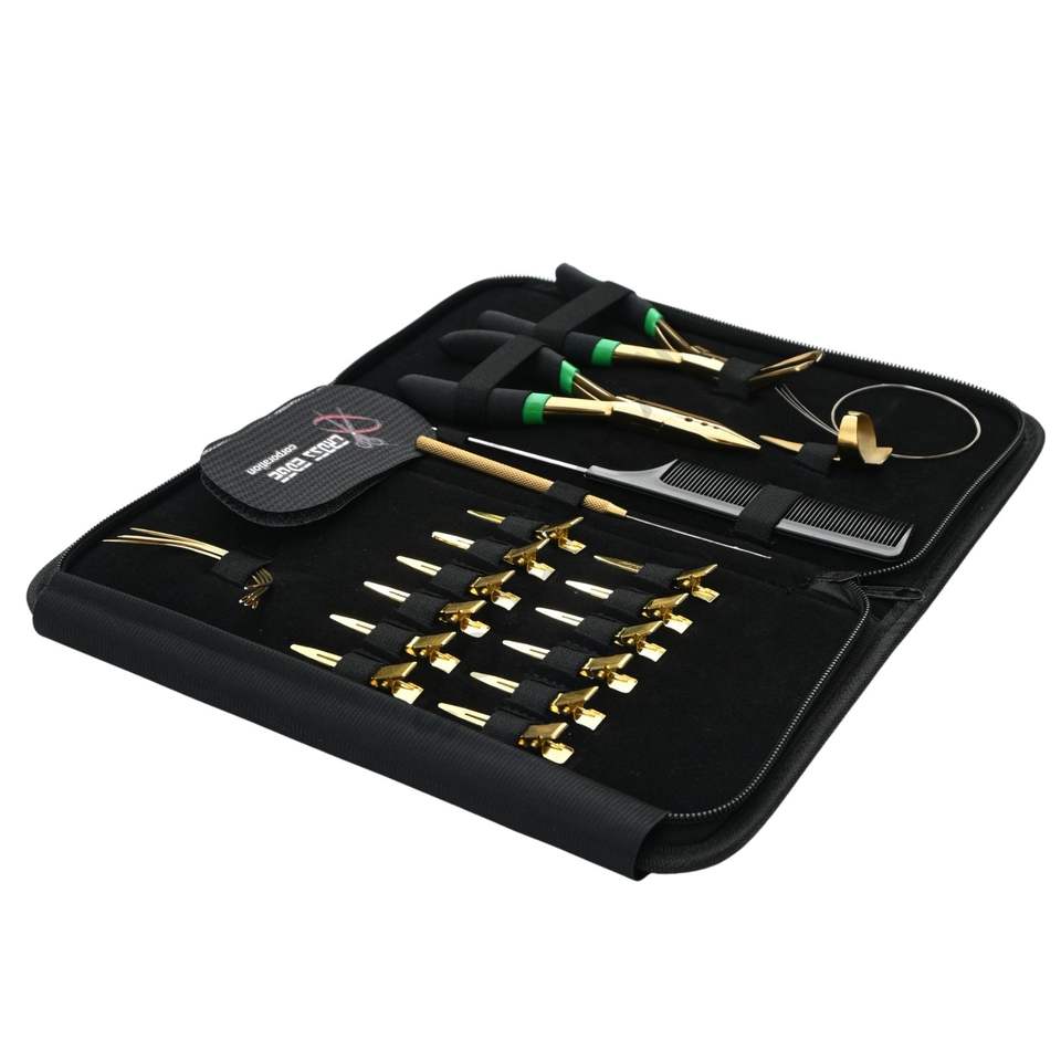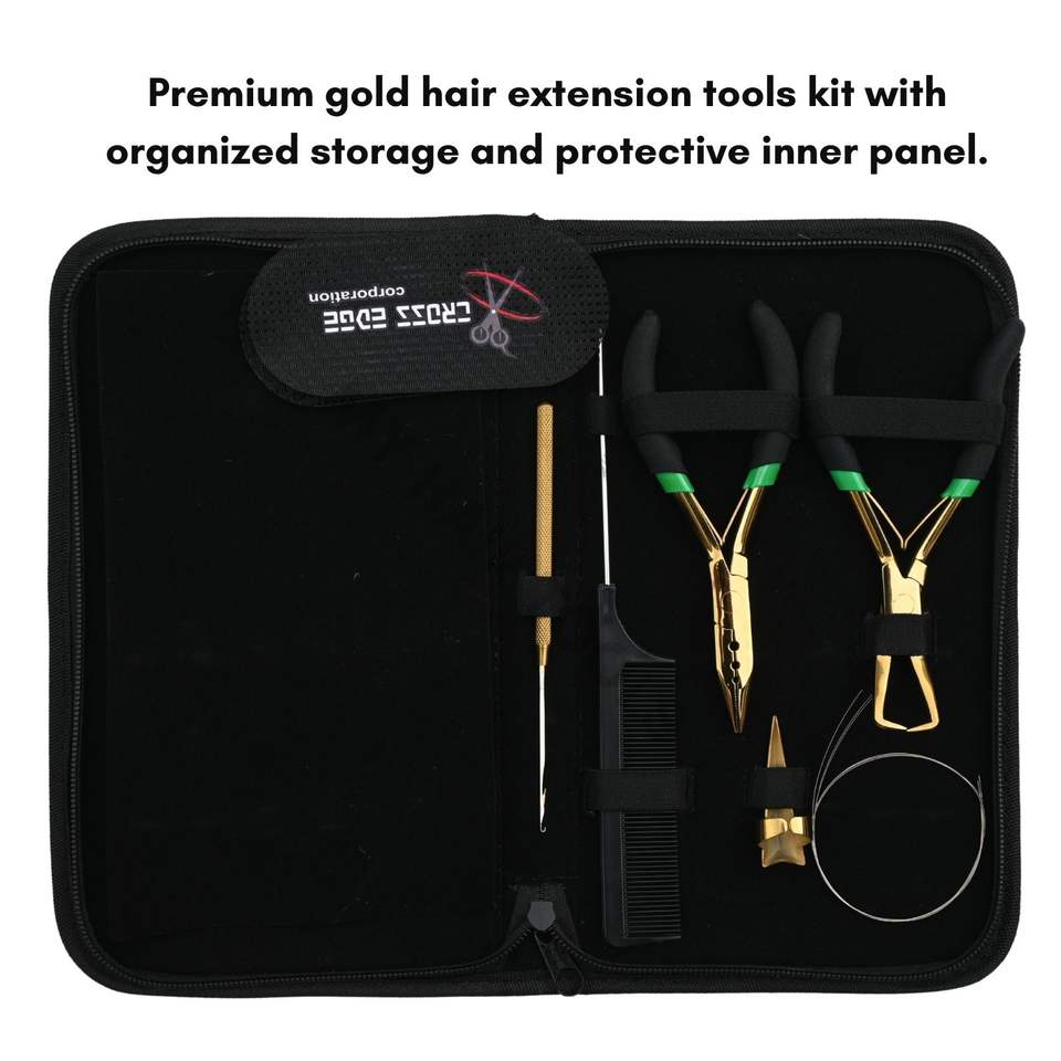 Kit d'outils pour extensions de cheveux dorées avec pince à extensions de 12,7 cm (5 pouces)