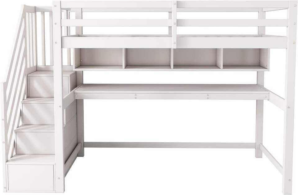 Lit superposé multifonctionnel pour enfants Cabine pour enfants Lit avec bureau et étagères avec barrière et escalier de rangement pour enfants