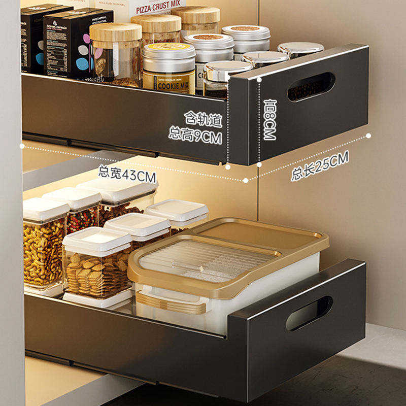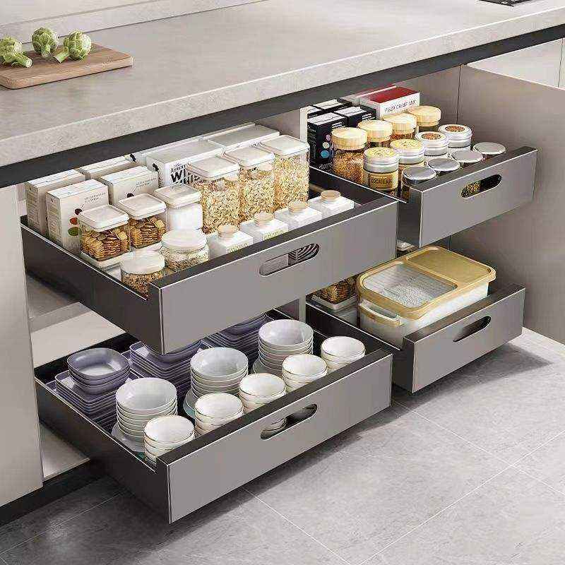 Étagère coulissante multifonctionnelle pour cuisine, tiroir coulissant moderne en aluminium, organisateur de placard coulissant, paniers en fil métallique pour cuisine
