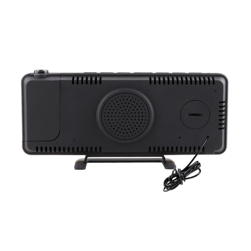 Horloge numérique à LED multifonctionnelle avec radio FM, réveil, affichage de la température et de l'humidité, projecteur de bureau, horloge noire électronique en ABS