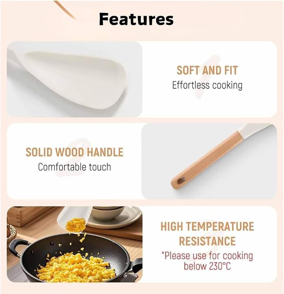 Cuillères multifonctions en silicone, cuillères de service en silicone de qualité alimentaire, spatule en silicone, ustensiles de cuisine en silicone avec manche en bois