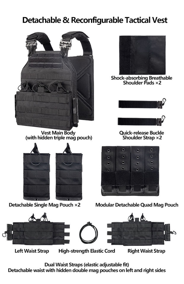 Gilet tactique multifonctionnel, utilitaire, pour la chasse en plein air, l'entraînement, à libération rapide, imperméable, avec poche pour chargeur