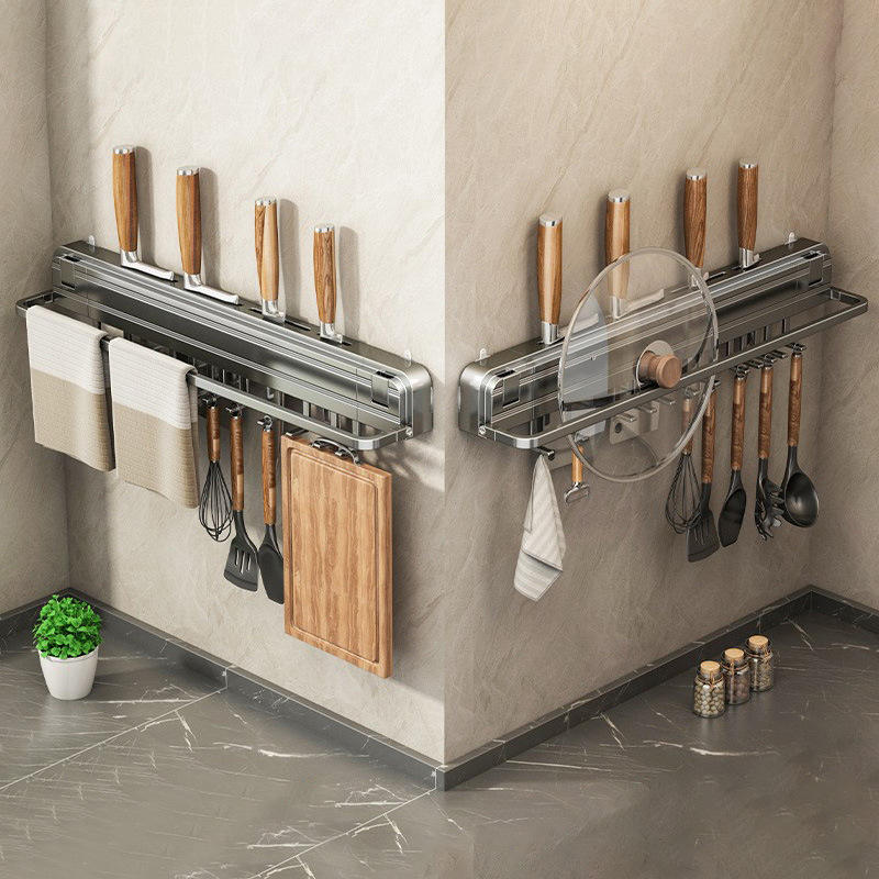 Support mural multifonction pour couteaux, gris anthracite, avec étagères à épices pour usage domestique