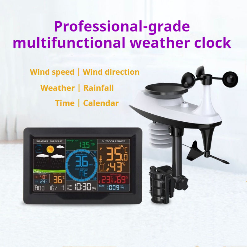 Station météo multifonctionnelle sans fil-Surveillance en temps réel de la vitesse du vent, des précipitations, de l'humidité et de la température avec chargement USB