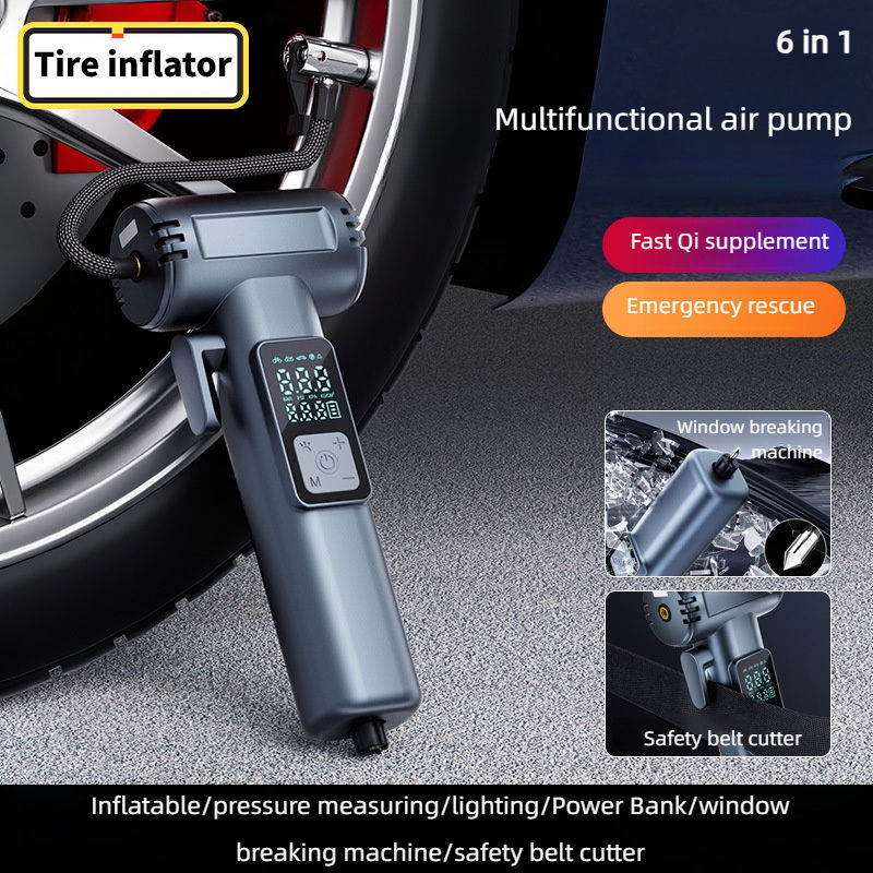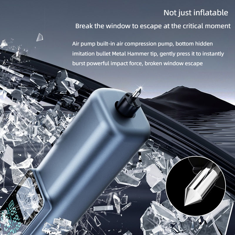 Outil d'urgence multifonctionnel pour gonfler les pneus avec pompe à air 150Psi avec fonction brise-vitre et couteau de coupe