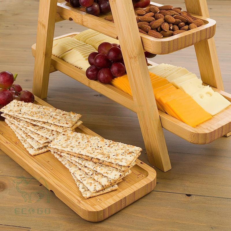 Plateau à charcuterie multifonctionnel à 3 niveaux en bambou écologique, plateau de buffet pour fête, support à cupcakes, support à dessert, cadeau de mariage, pour toutes les occasions