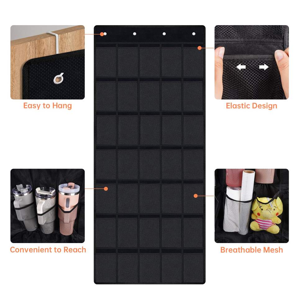 Organisateur de porte multifonctionnel à 35 poches pour gobelets Stanley dans la cuisine, rangement sécurisé en maille élastique, porte-gobelets