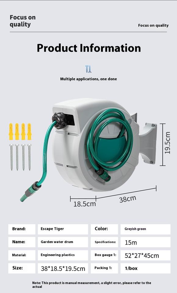 Enrouleur de tuyau d'arrosage multifonctionnel pour réparation automobile Écarteur télescopique automatique de tuyau en PVC Matériau plastique combiné