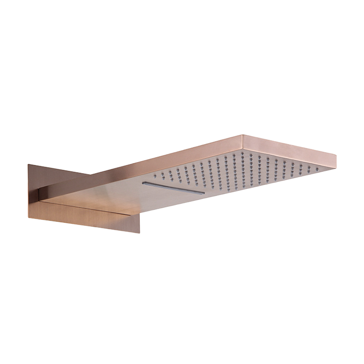 Ensemble multifonctionnel en laiton de cinq pièces : Pommeau de douche mural fixe massant, Robinets thermostatiques brossés, Douche de plafond effet pluie