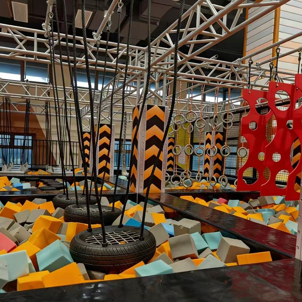 Parc de trampolines intérieur multifonctionnel avec cordes d'escalade pour le jeu et le divertissement des enfants dans les centres commerciaux