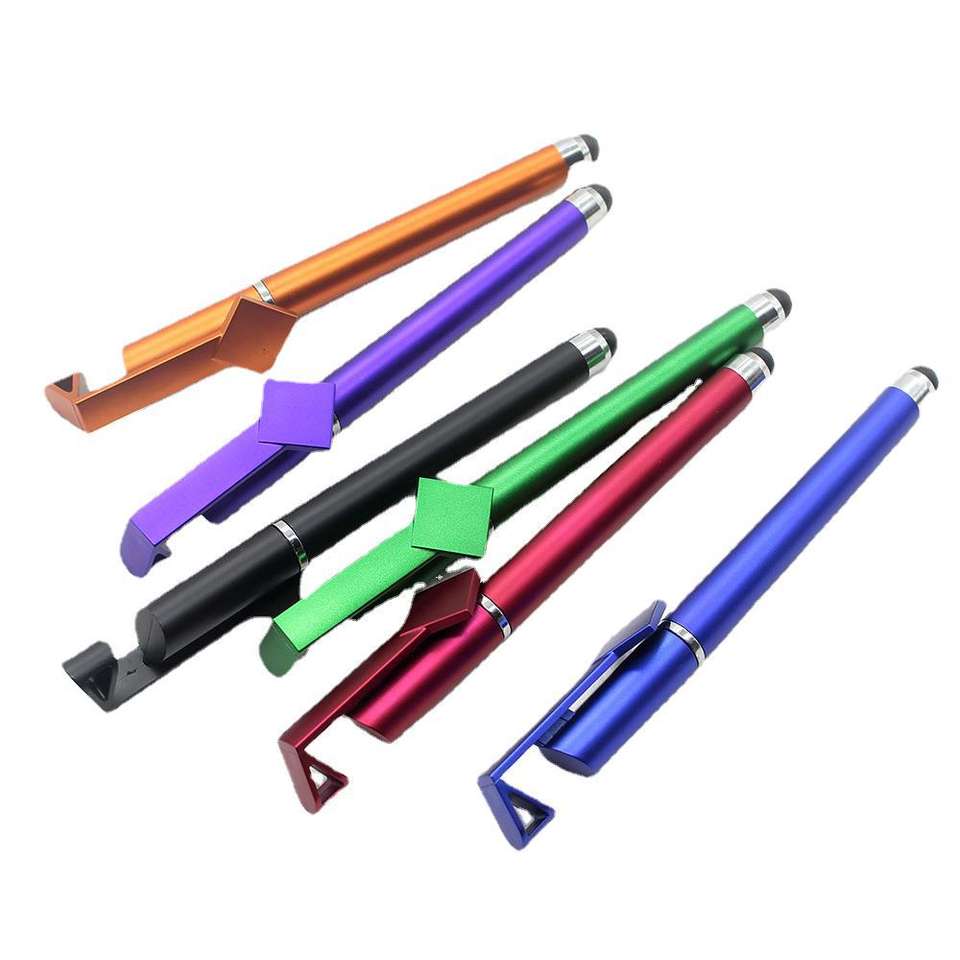 Stylo gel tactile multifonctionnel coloré, support de téléphone en plastique et stylo promotionnel en un seul