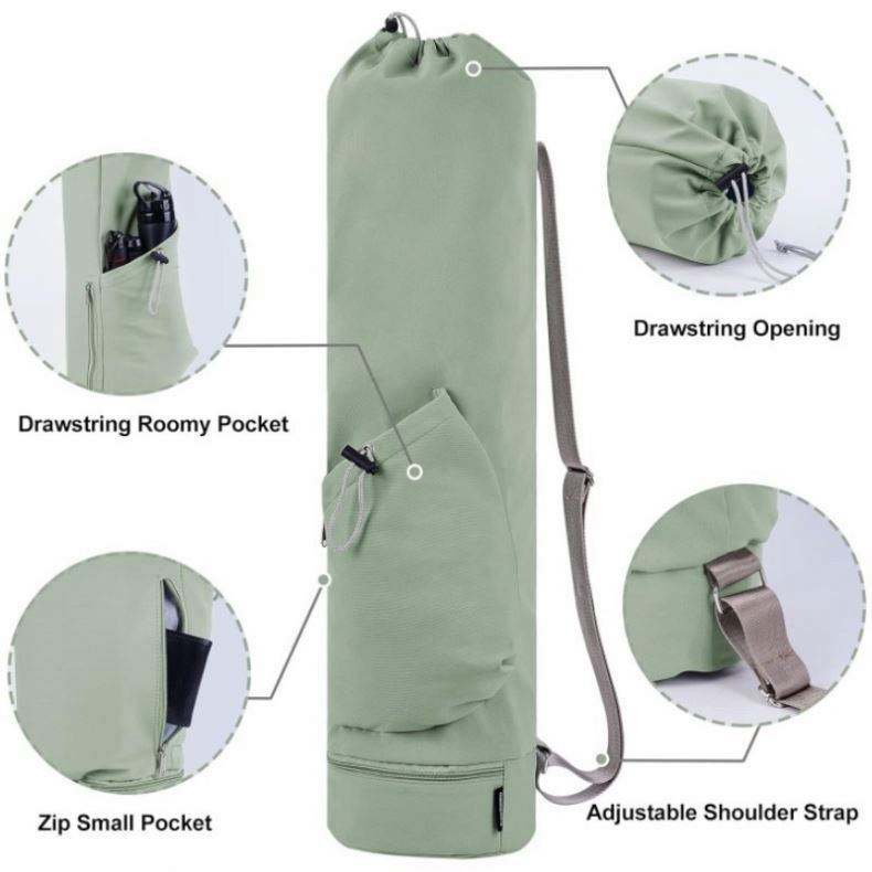 Sac de yoga multifonctionnel avec cordon de serrage, poche pour bouteille d'eau et poche inférieure pour articles mouillés