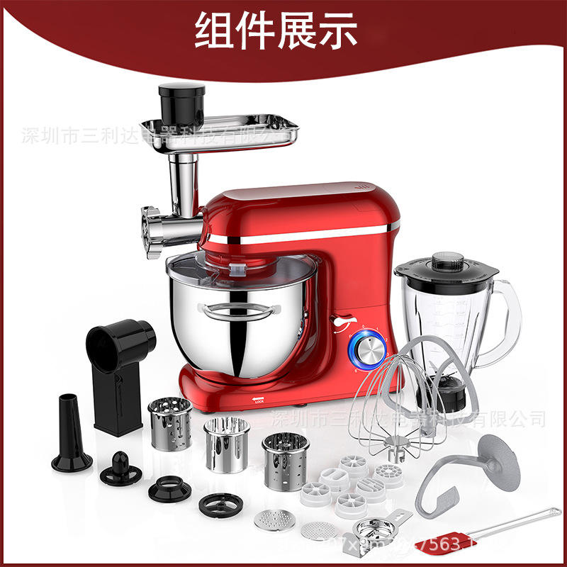 Robot culinaire multifonction 7L avec batteur sur socle, design à tête inclinable, mixeur électrique de cuisine avec accessoires blender et presse-agrumes
