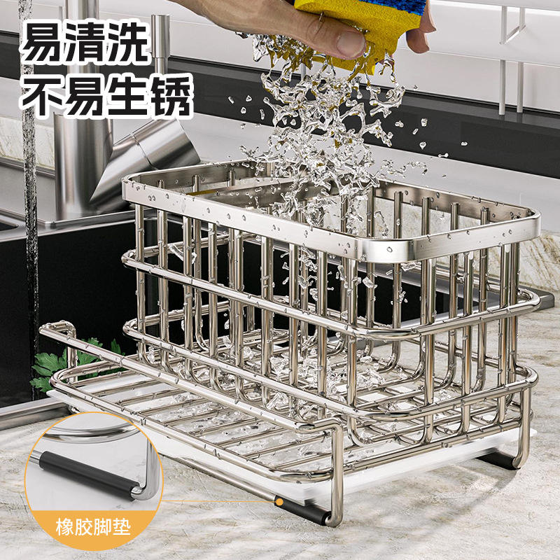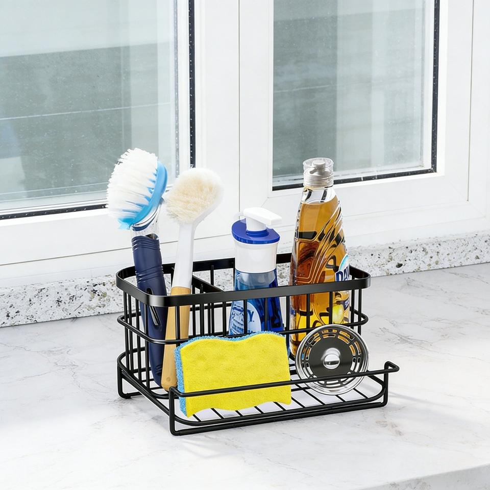 Étagère de rangement multifonctionnelle pour évier de cuisine, 2 niveaux, noire, résistante à l'eau, pour ustensiles de vaisselle et savon