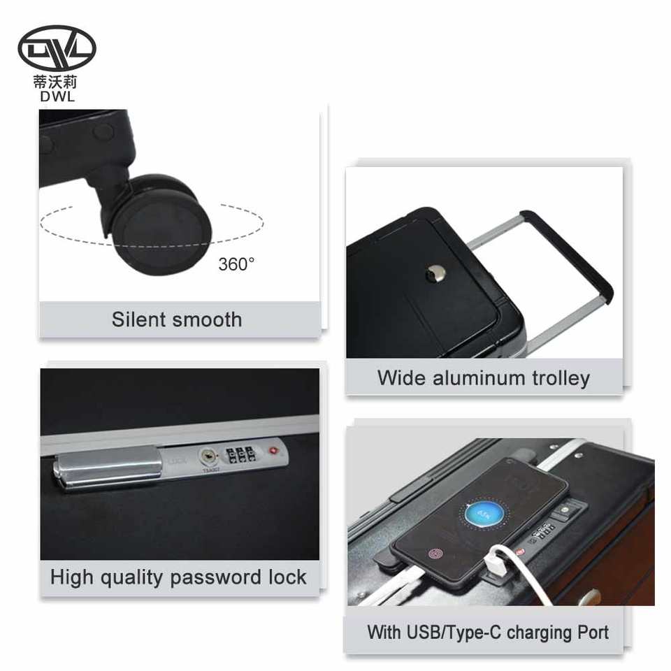 Écologique, Durable, Poids léger, Imperméable, Portable, Anti-vol, Multifonctionnel, Porte-gobelet, valise en aluminium, Preuve de saletéCaractéristique