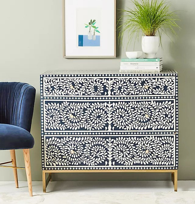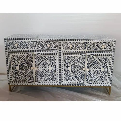 Commode compacte multifonctionnelle de luxe avec incrustation d'os Solutions de rangement peu encombrantes pour la maison, le bar ou le salon