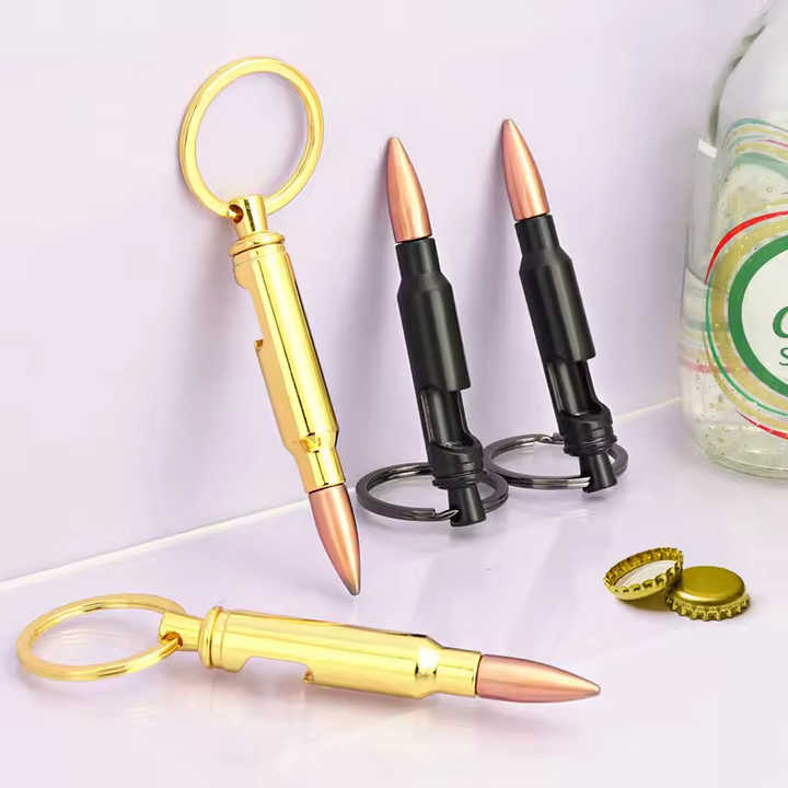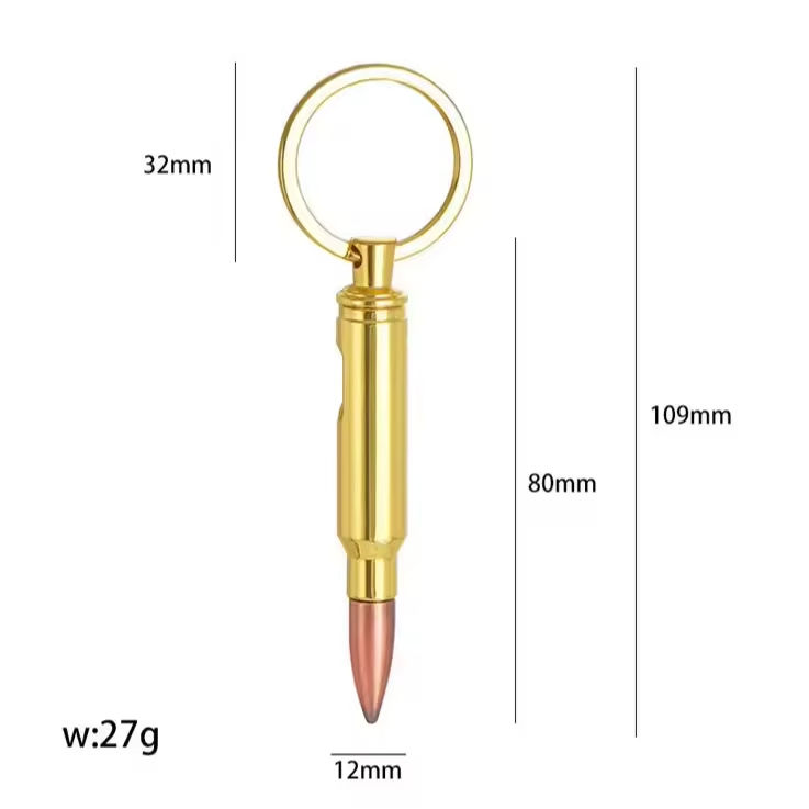 Multi Functional Modern Polished Bullet Bottle Opener Keychain 3D Fashion Metal Hook Zinc Alloy Commemorative Gift Custom Logo